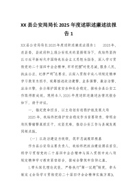 XX县公安局局长2025年度述职述廉述法报告1