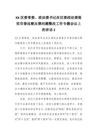 XX区委常委、政法委书记在区委政法委落实市委巡察反馈问题整改工作专题会议上的讲话2