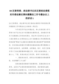 XX区委常委、政法委书记在区委政法委落实市委巡察反馈问题整改工作专题会议上的讲话1