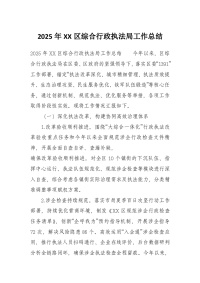 2025年XX区综合行政执法局工作总结