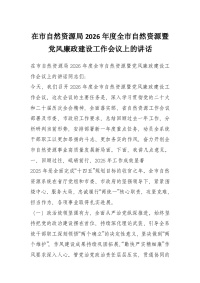 在市自然资源局2026年度全市自然资源暨党风廉政建设工作会议上的讲话