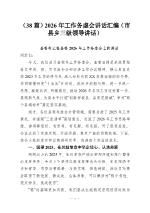 (38篇)2026年工作务虚会讲话汇编(市县乡三级领导讲话)