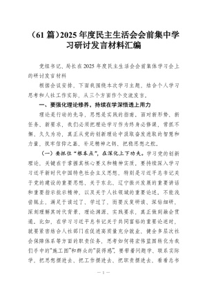 (61篇)2025年度民主生活会会前集中学习研讨发言材料汇编