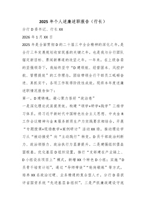 2025年个人述廉述职报告(行长)