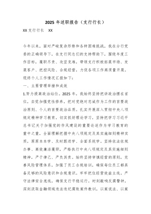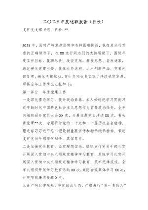 2025年度述职述廉报告(行长)