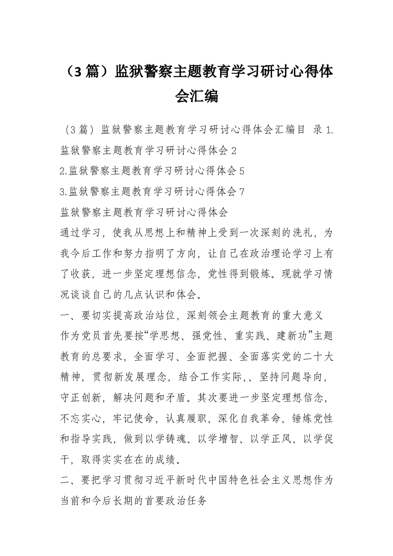 (3篇)监狱警察主题教育学习研讨心得体会汇编