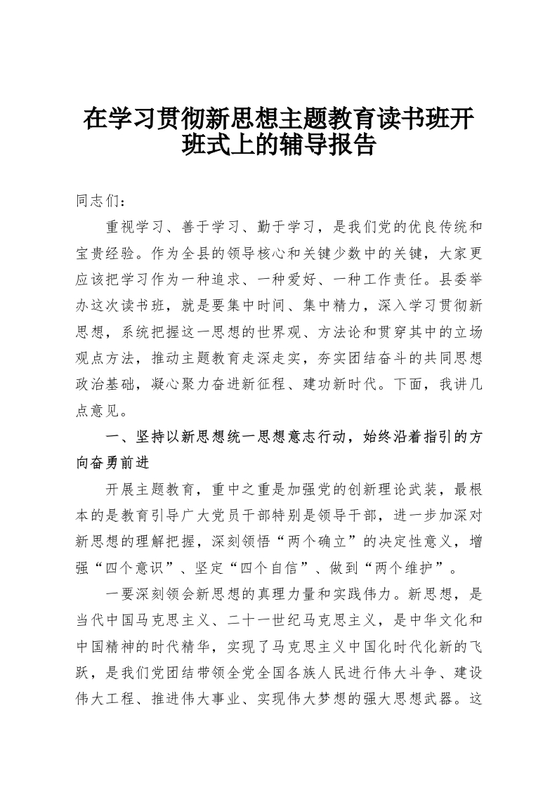 在学习贯彻新思想主题教育读书班开班式上的辅导报告