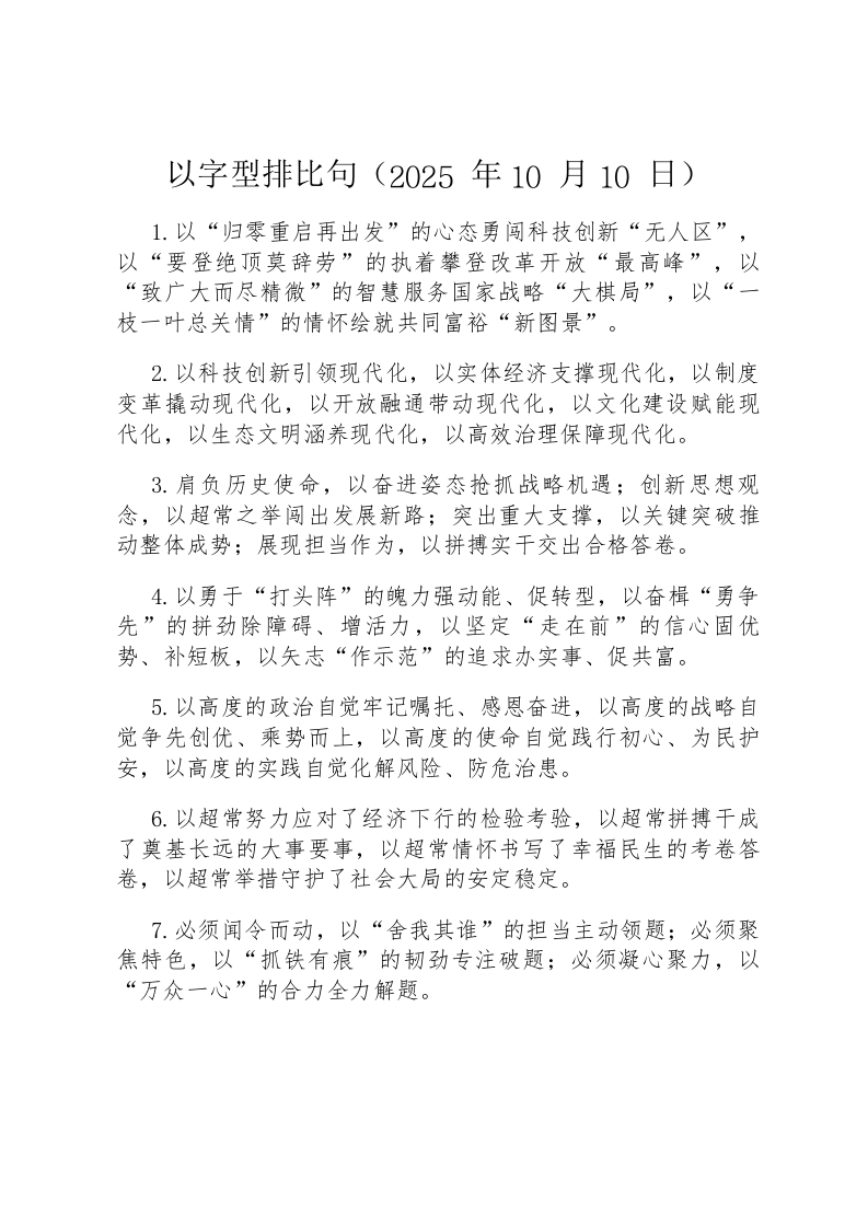 以字型排比句(2025年10月10日)