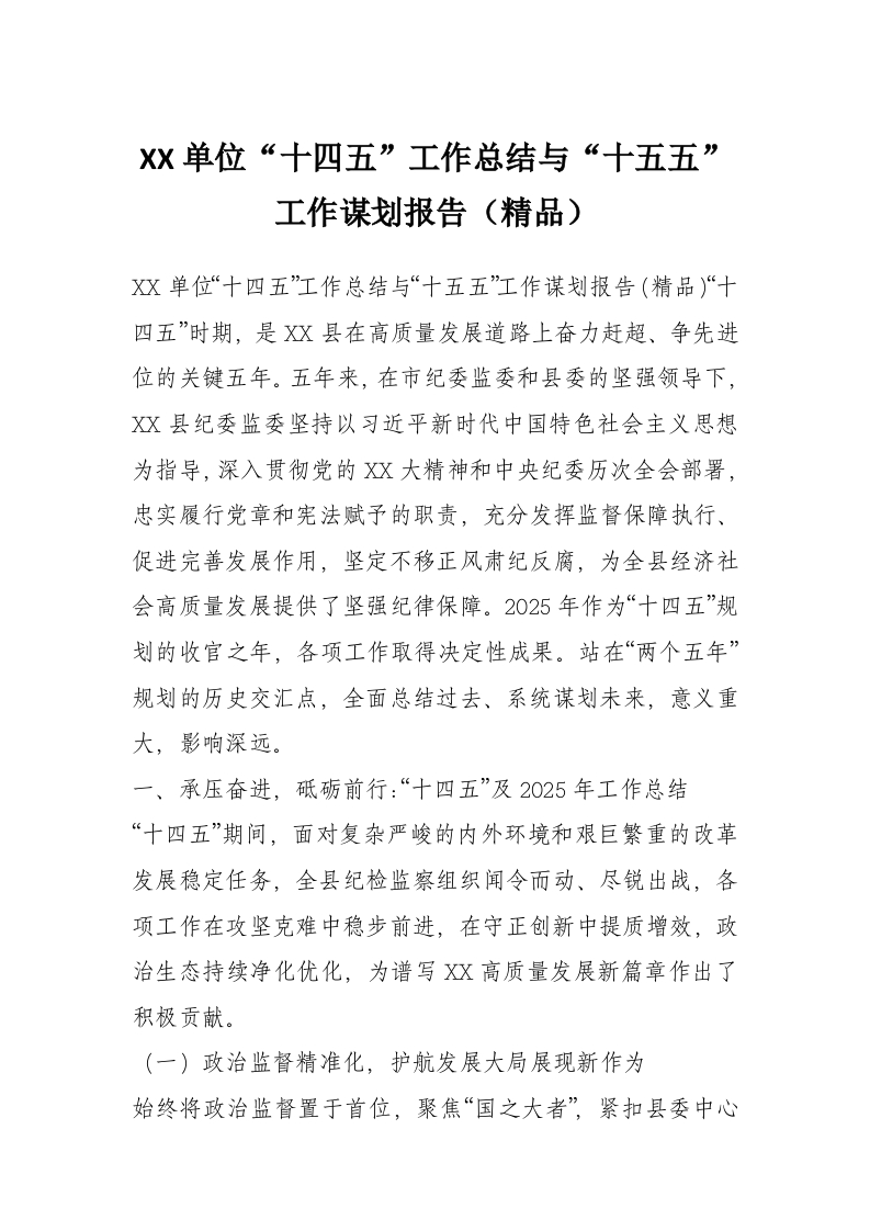 XX单位“十四五”工作总结与“十五五”工作谋划报告(精品)