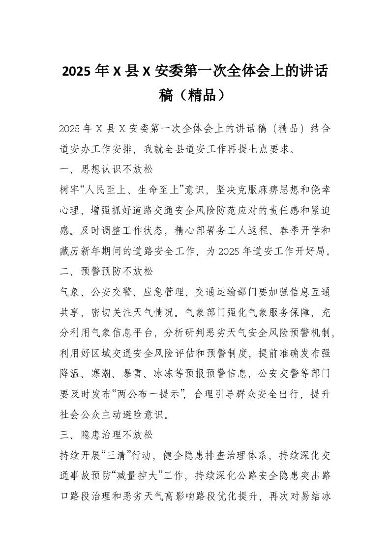 2025年X县X安委第一次全体会上的讲话稿(精品)
