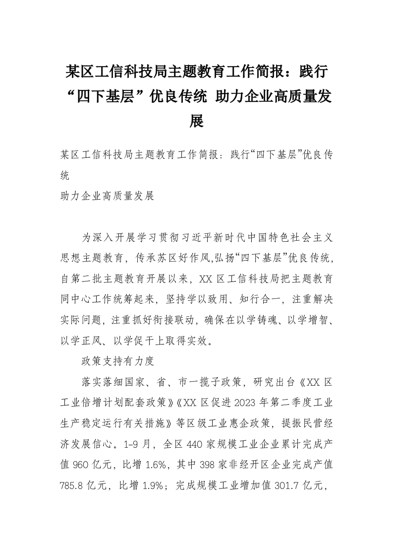某区工信科技局主题教育工作简报:践行“四下基层”优良传统 助力企业高质量发展