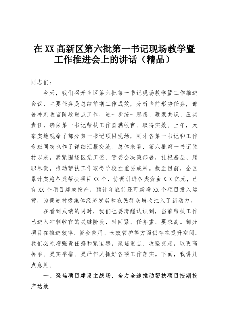 在XX高新区第六批第一书记现场教学暨工作推进会上的讲话(精品)