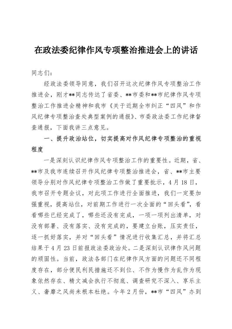 首页精选范文在政法委纪律作风专项整治推进会上的讲话