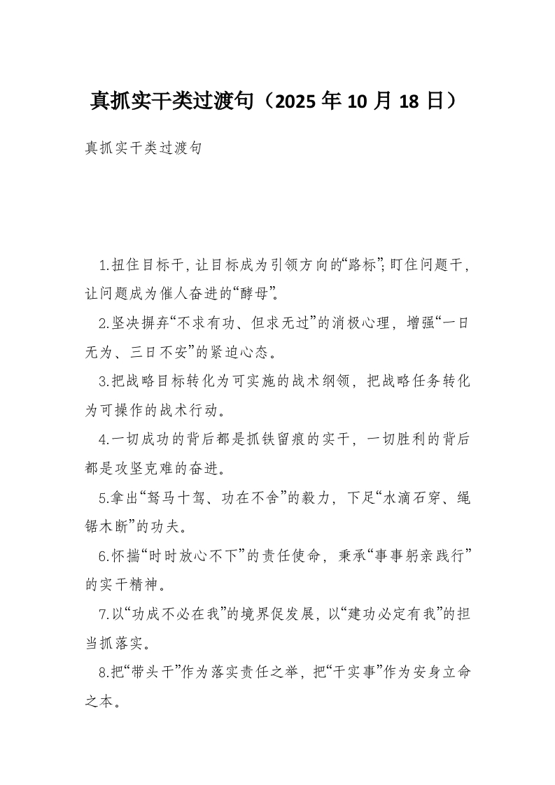 真抓实干类过渡句(2025年10月18日)