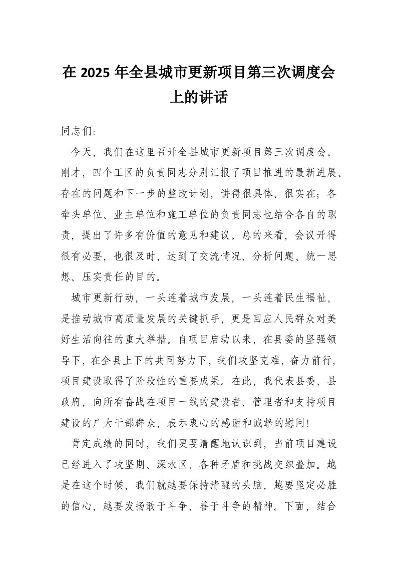 首页工作文档在2025年全县城市更新项目第三次调度会上的讲话