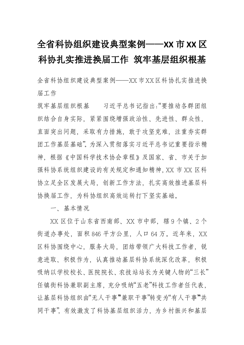 全省科协组织建设典型案例——XX市XX区科协扎实推进换届工作 筑牢基层组织根基