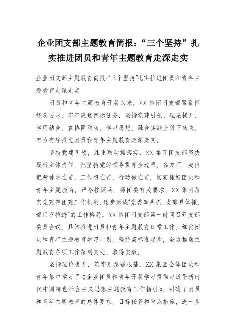 企业团支部主题教育简报:“三个坚持”扎实推进团员和青年主题教育走深走实_1