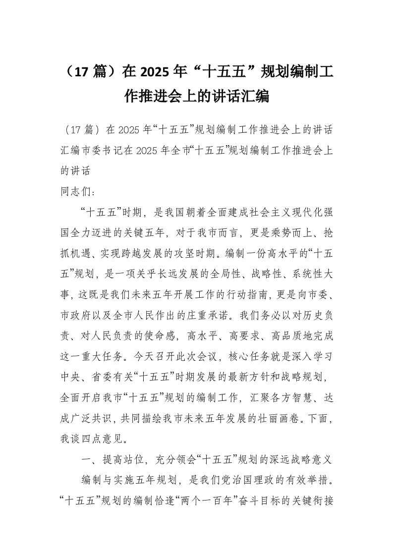 (17篇)在2025年“十五五”规划编制工作推进会上的讲话汇编
