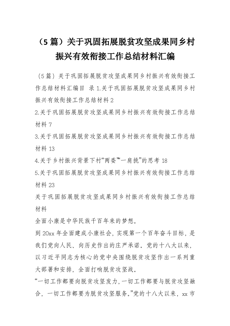 (5篇)关于巩固拓展脱贫攻坚成果同乡村振兴有效衔接工作总结材料汇编