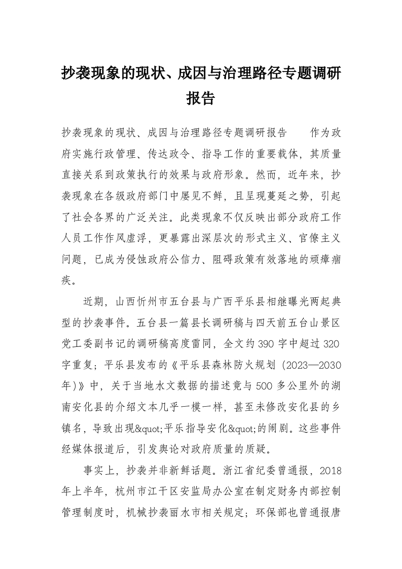首页精选范文公文抄袭现象的现状、成因与治理路径专题调研报告