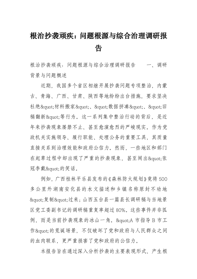 首页精选范文根治公文抄袭顽疾:问题根源与综合治理调研报告