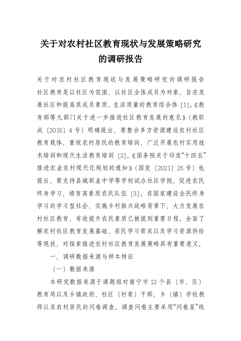 首页材料汇编关于对农村社区教育现状与发展策略研究的调研报告
