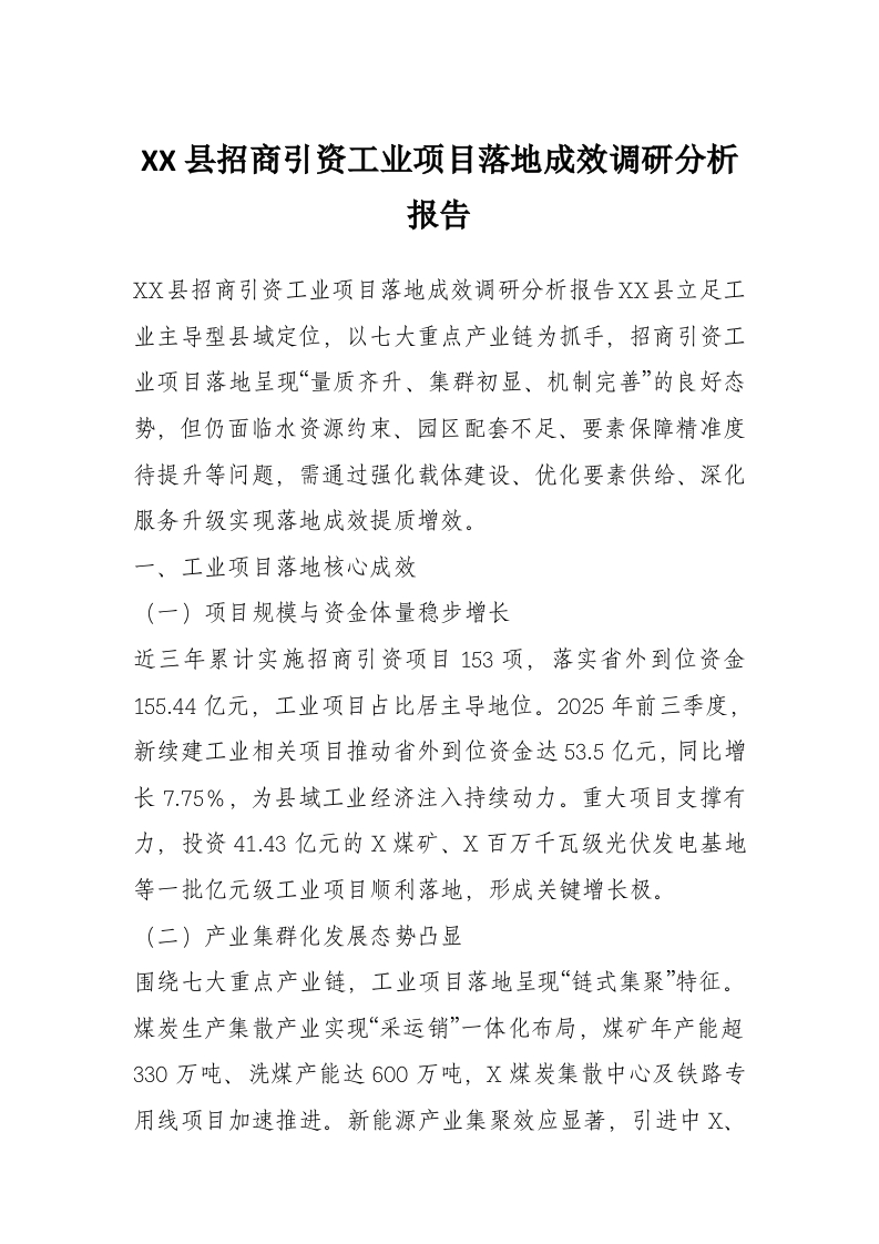 首页材料汇编XX县招商引资工业项目落地成效调研分析报告