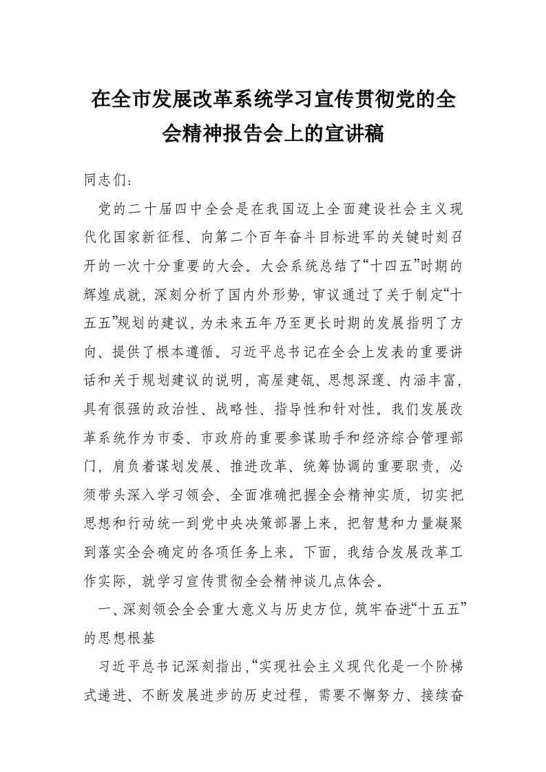 首页工作文档在全市发展改革系统学习宣传贯彻党的***精神报告会上的宣讲稿