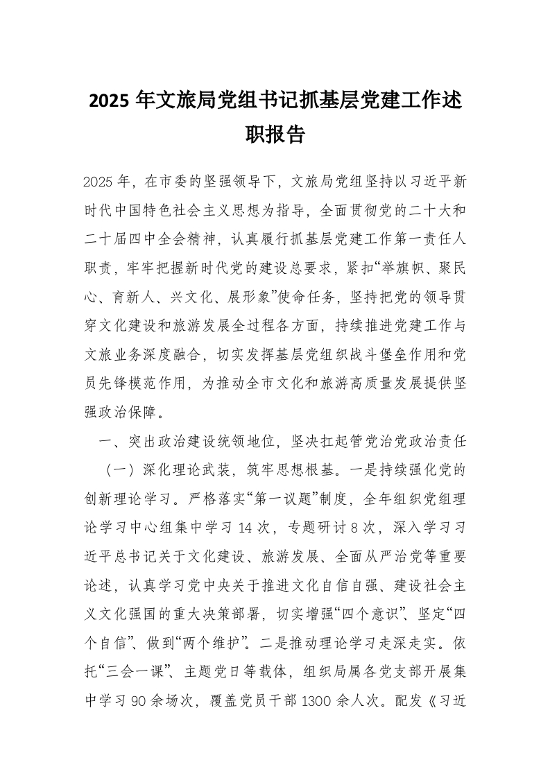 首页学习提升2025年文旅局党组书记抓基层党建工作述职报告