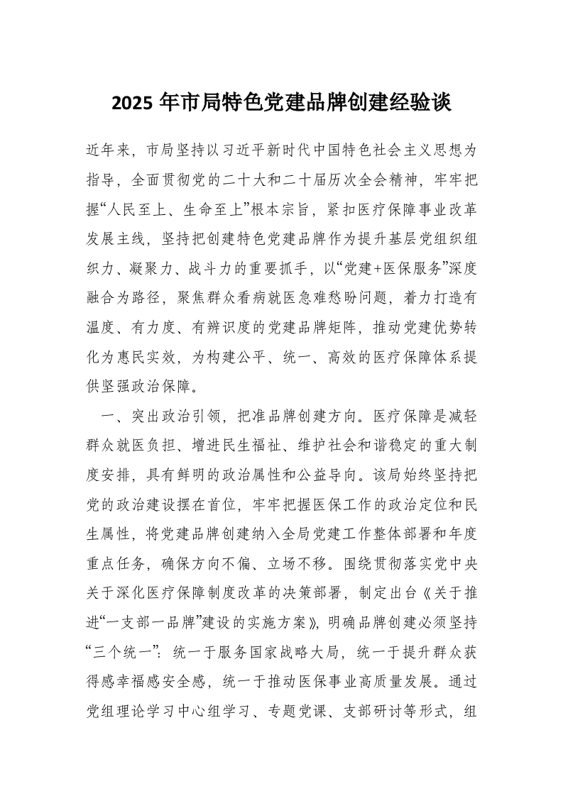 首页学习提升2025年市局特色党建品牌创建经验谈