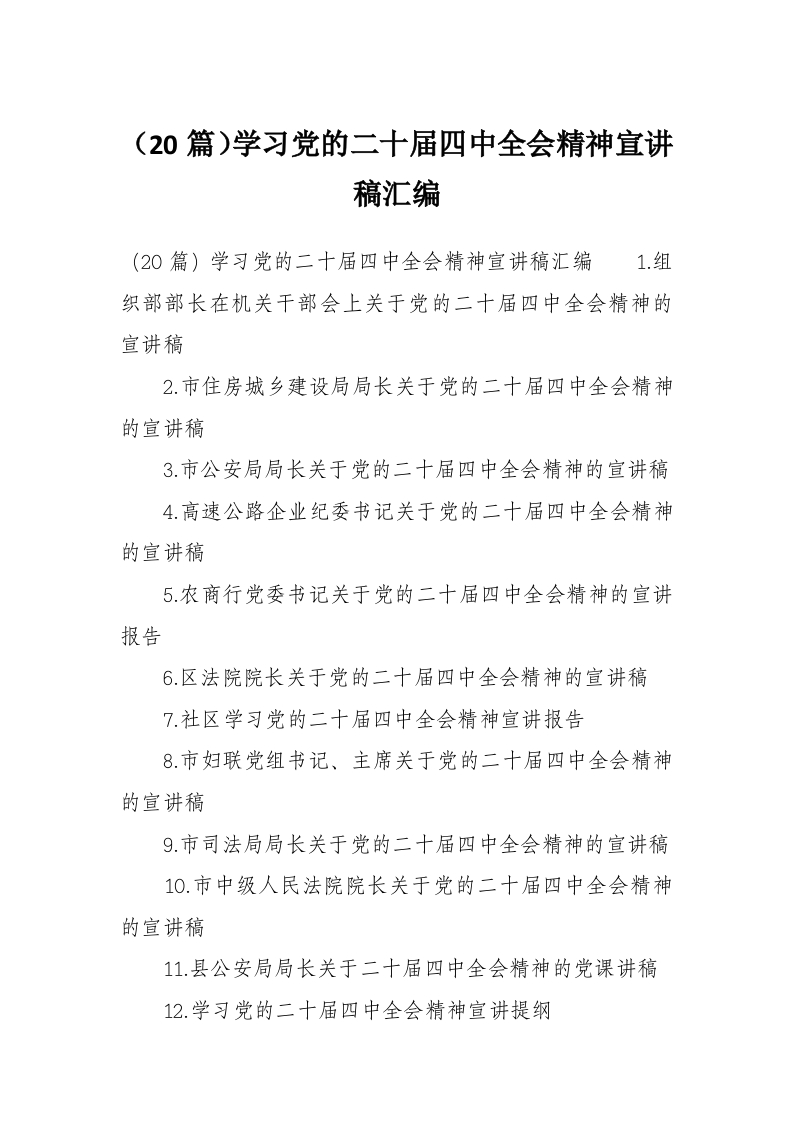 (20篇)学习党的二十届四中***精神宣讲稿汇编