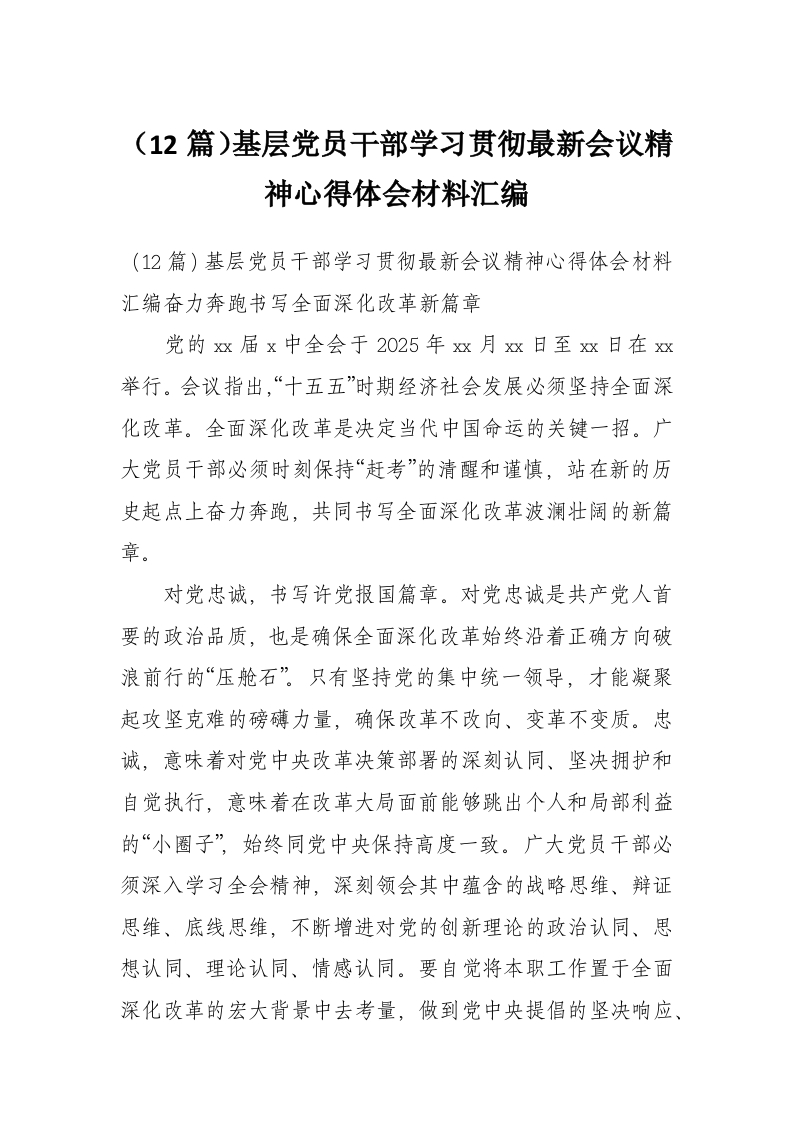 (12篇)基层党员干部学习贯彻最新会议精神心得体会材料汇编