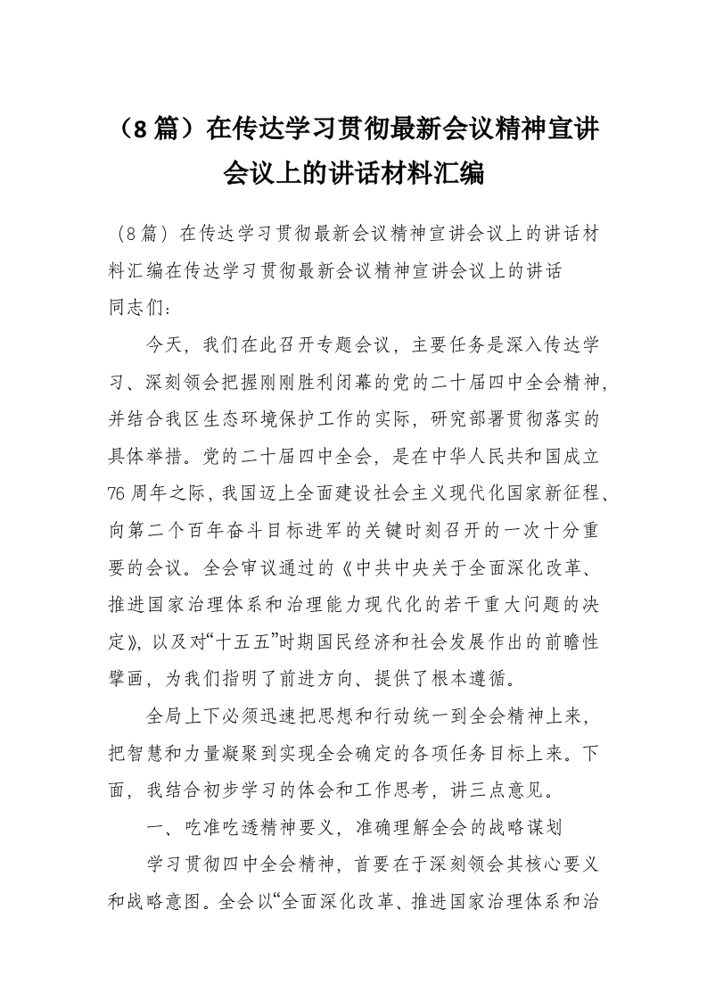 (8篇)在传达学习贯彻最新会议精神宣讲会议上的讲话材料汇编