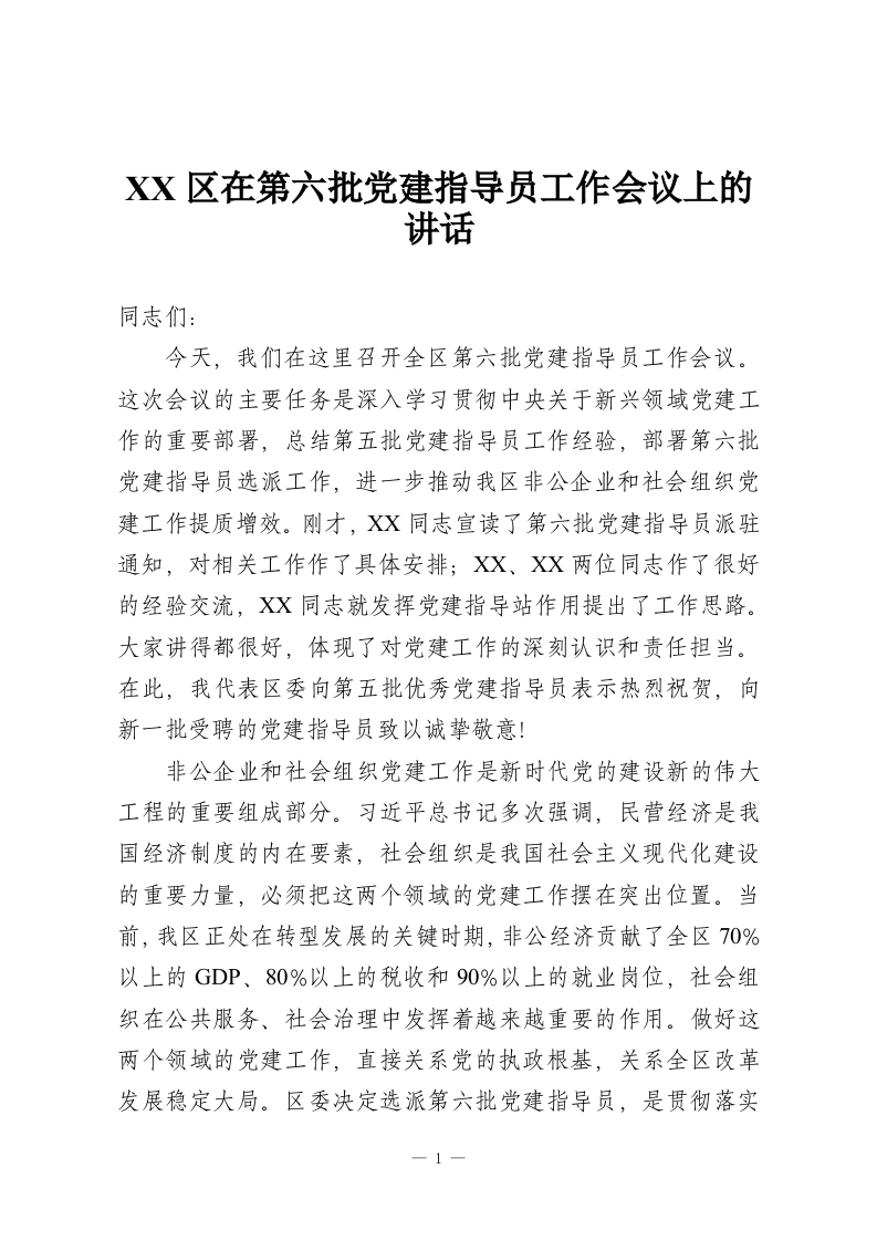 首页讲课讲稿XX区在第六批党建指导员工作会议上的讲话