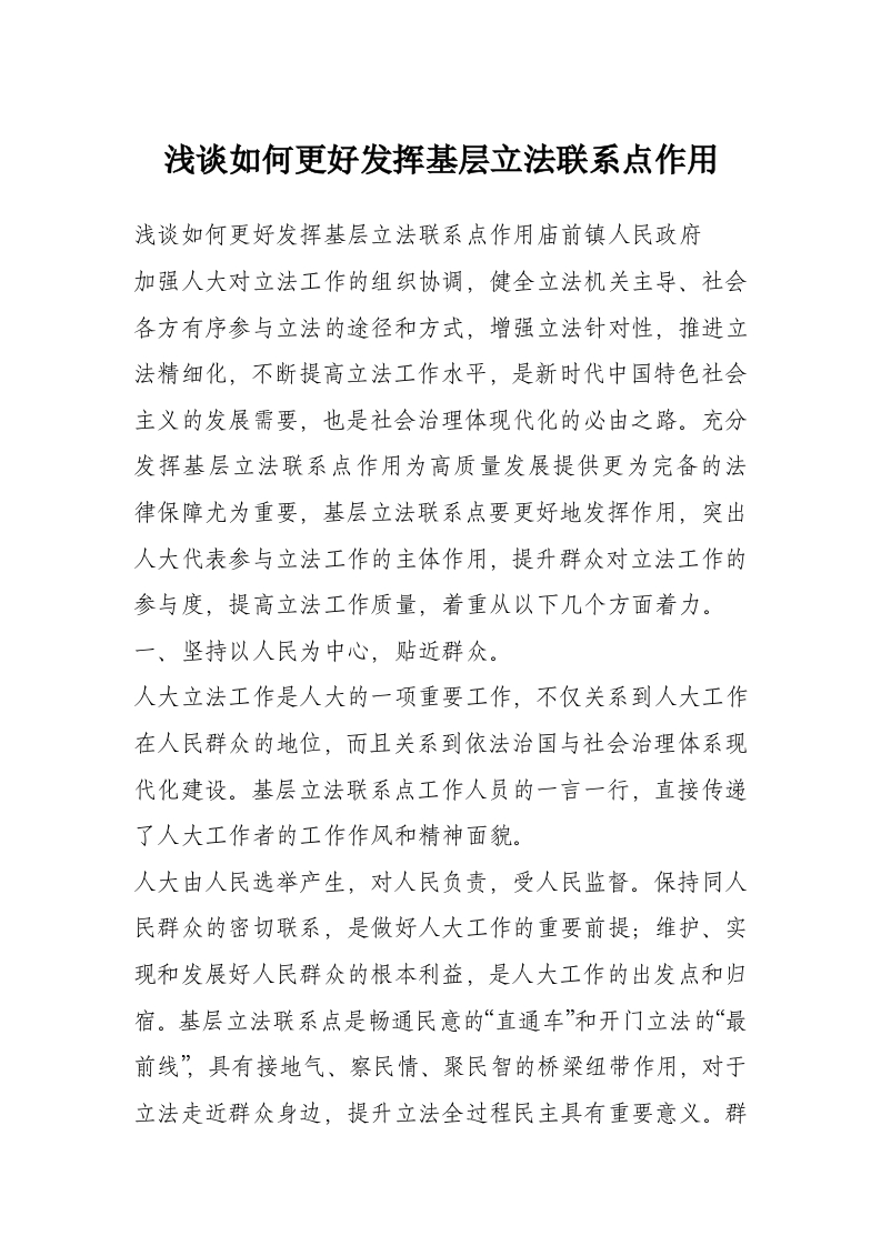 首页材料汇编浅谈如何更好发挥基层立法联系点作用
