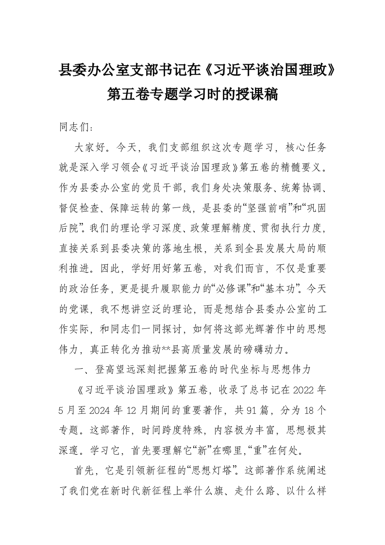 县委办公室支部书记在《***谈治国理政》第五卷专题学习时的授课稿