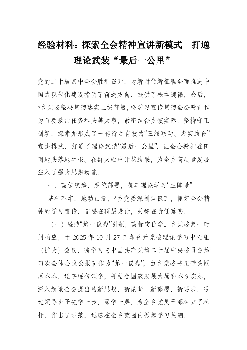 经验材料:探索***精神宣讲新模式 打通理论武装“最后一公里”