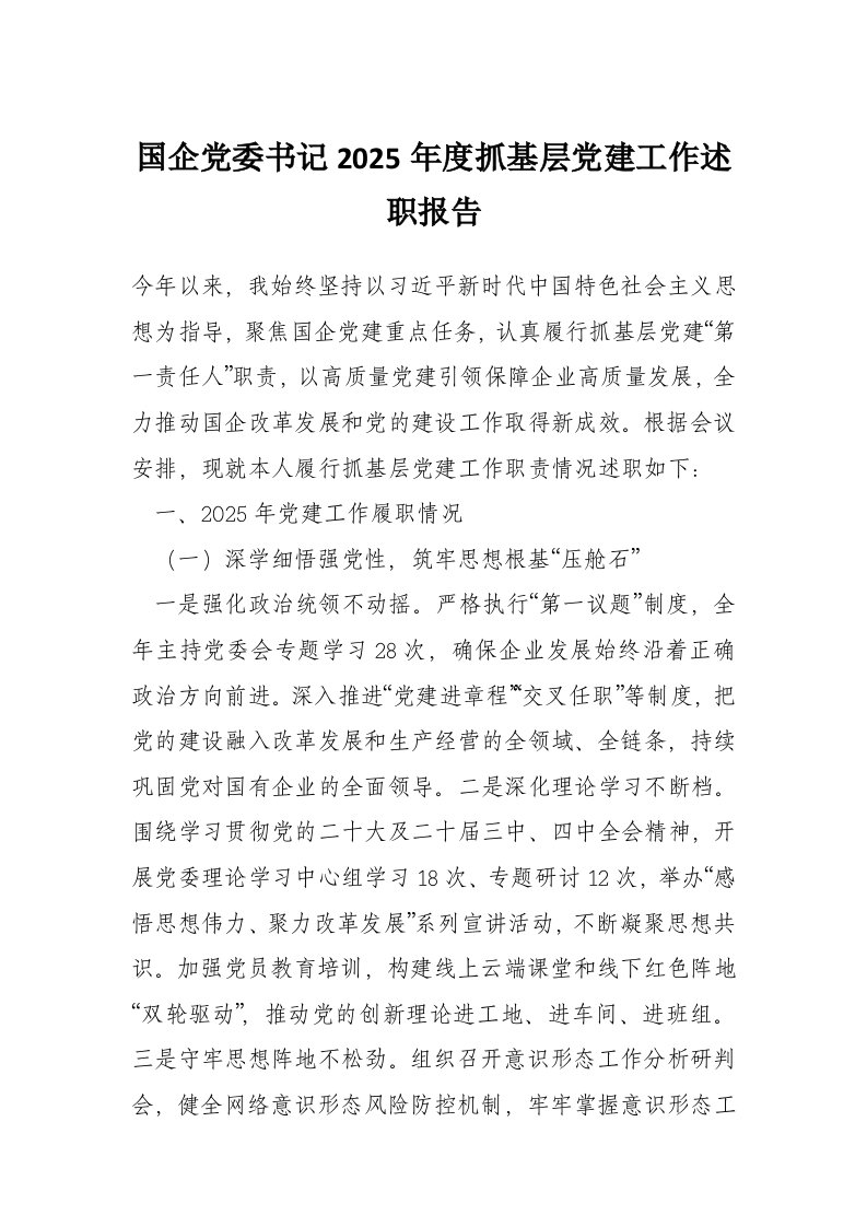 首页写作素材国企党委书记2025年度抓基层党建工作述职报告