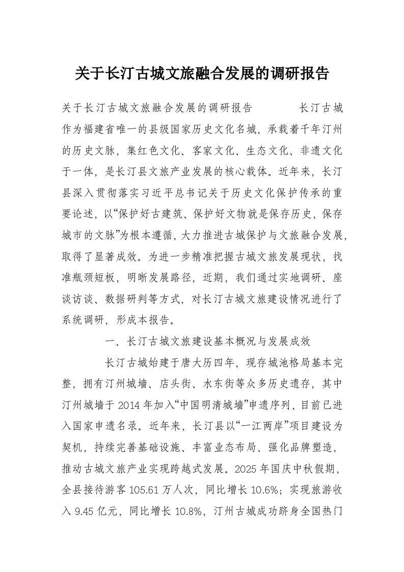 首页写作素材关于长汀古城文旅融合发展的调研报告