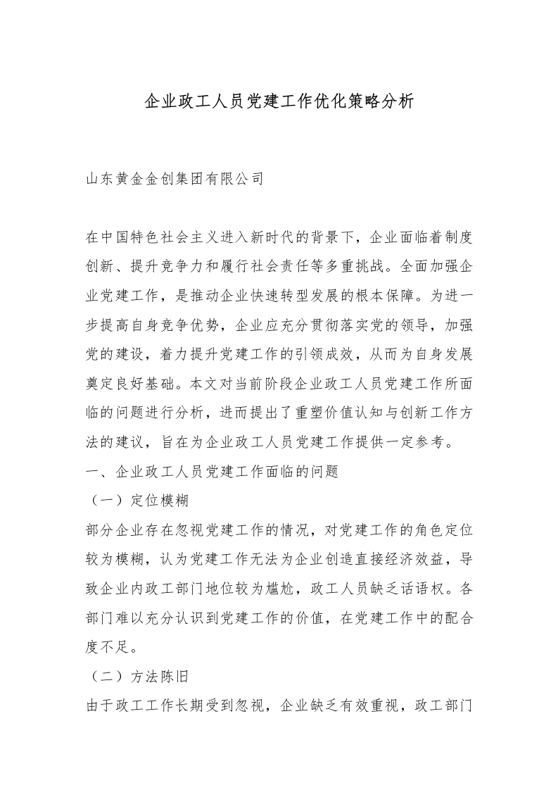 首页精选范文企业政工人员党建工作优化策略分析_副本