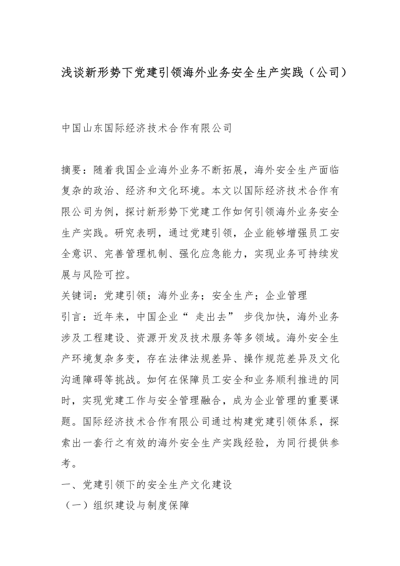 浅谈新形势下党建引领海外业务安全生产实践(公司)_副本