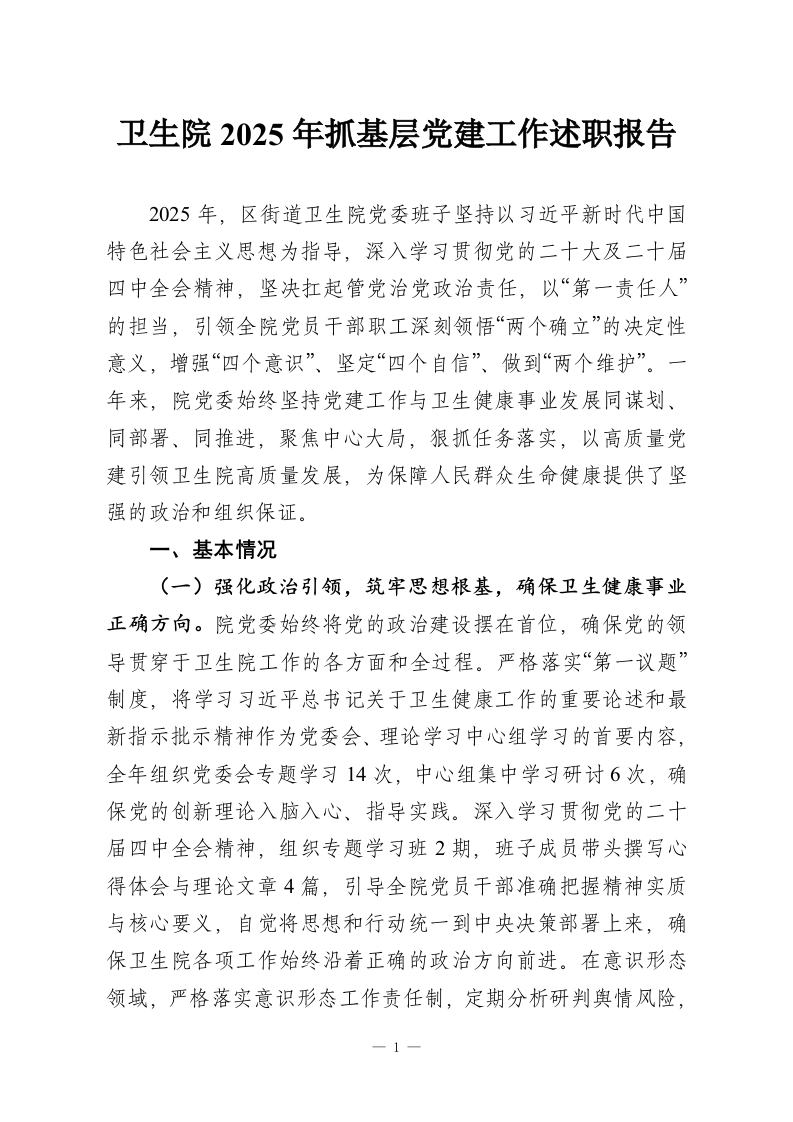 首页讲课讲稿卫生院2025年抓基层党建工作述职报告