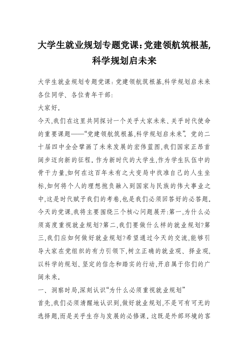 大学生就业规划专题党课:党建领航筑根基,科学规划启未来