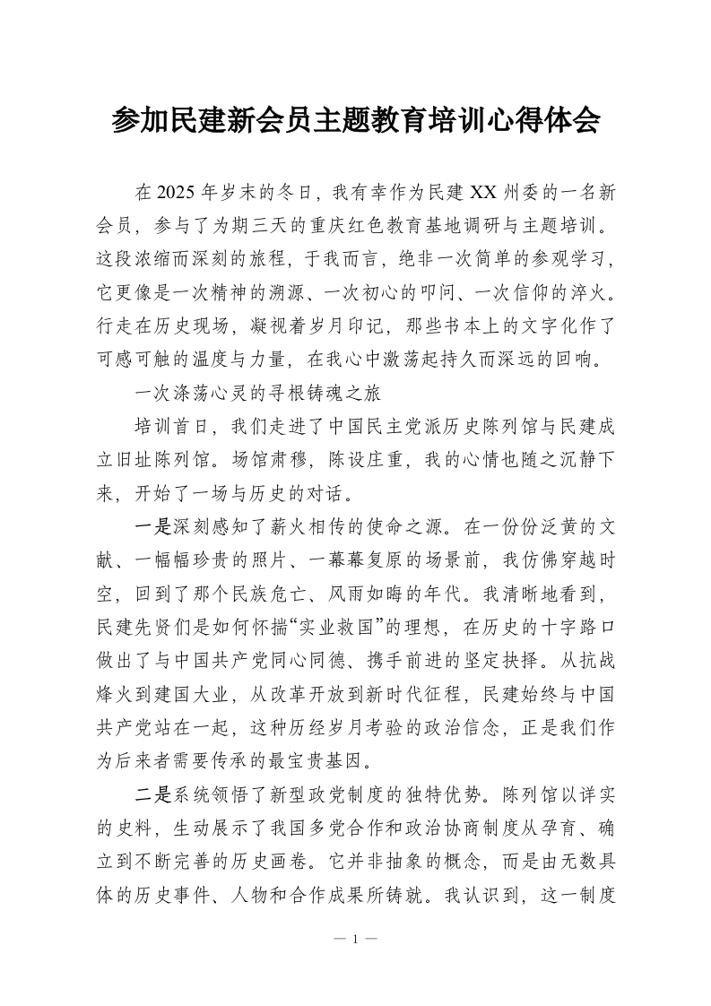 参加民建新会员主题教育培训心得体会