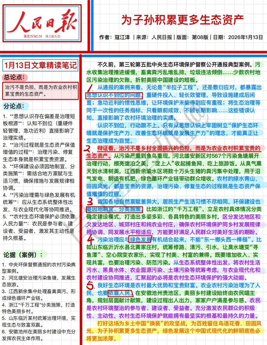 首页人民时评2026.1.13 思维导图:为子孙积累更多生态资产