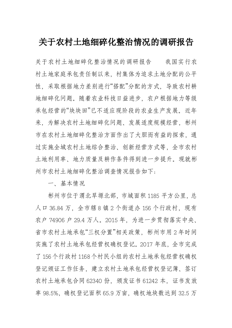 首页工作文档关于农村土地细碎化整治情况的调研报告