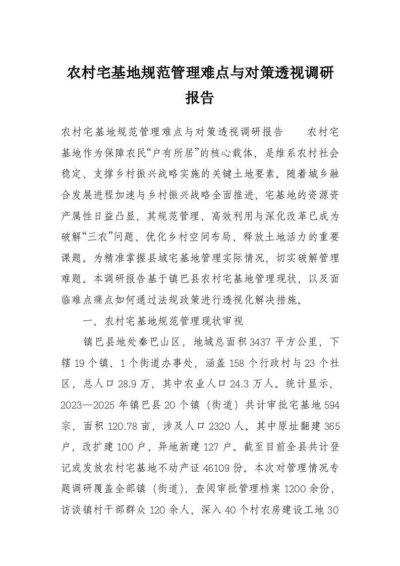 农村宅基地规范管理难点与对策透视调研报告