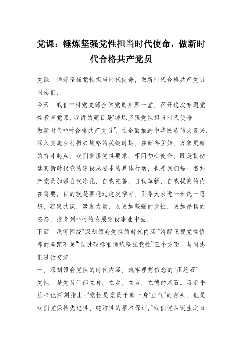 党课:锤炼坚强党性担当时代使命,做新时代合格***员