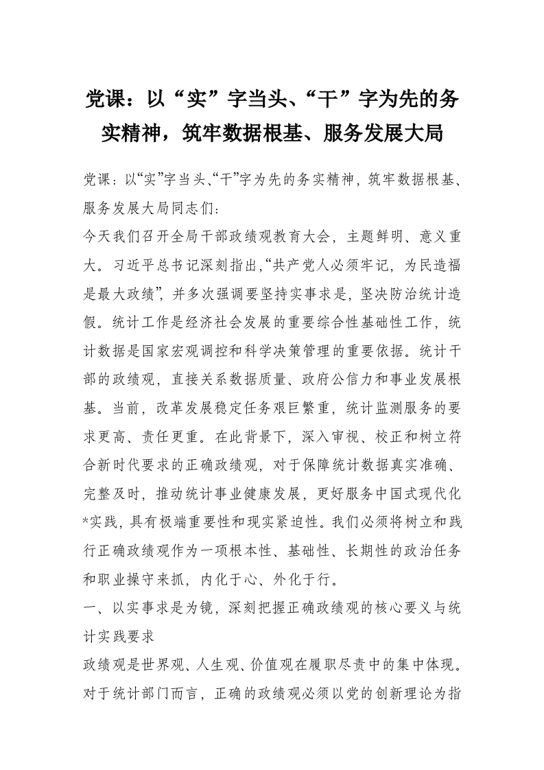 首页写作素材党课:以“实”字当头、“干”字为先的务实精神,筑牢数据根基、服务发展大局