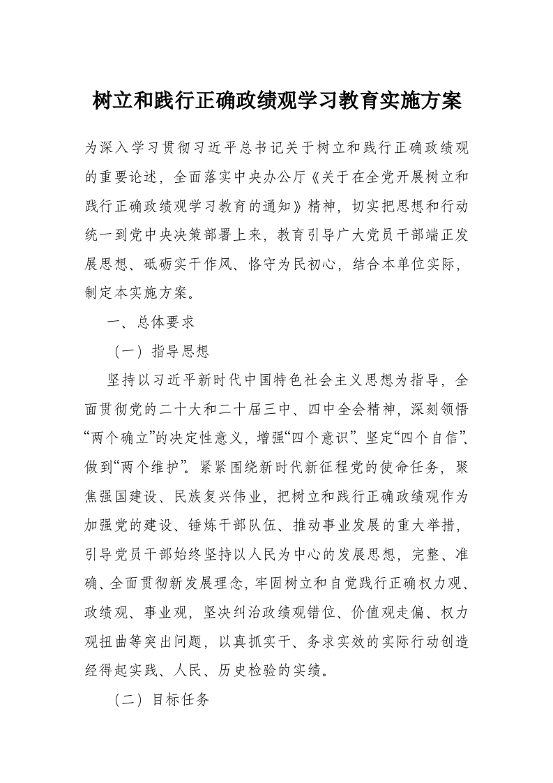 树立和践行正确政绩观学习教育实施方案